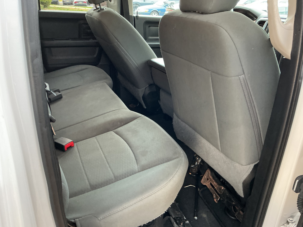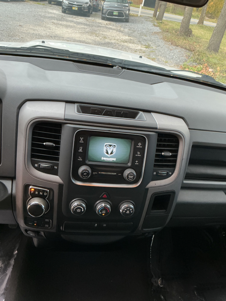 Hop into this sleek and powerful 2018 White RAM 1500 and get ready for an adventure! This beast is equipped with a 3.6L V6 engine that's flex fuel capable, ensuring you have the power you need for any journey. With part-time four-wheel drive and towing equipment, you can take on any terrain and bring along all the gear you need. The cab is designed for comfort and convenience, with manual air conditioning, cruise control, and a rear folding seat for extra storage space. The exterior features include black accents, deep tinted glass, and cargo lights for added functionality. Plus, with a ParkView back-up camera, you can easily navigate in and out of tight spots. Worried about the vehicle's history? Don't fret - a Carfax report is available for your peace of mind. Whether you're hitting the off-road trails or cruising through the city streets, this White RAM 1500 is ready to impress and perform. Time to buckle up and enjoy the ride!