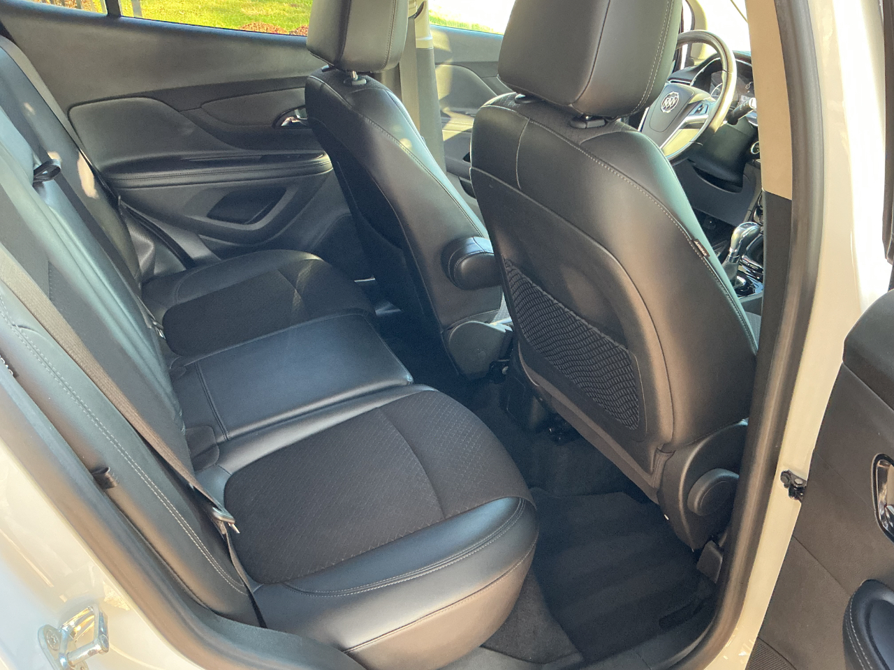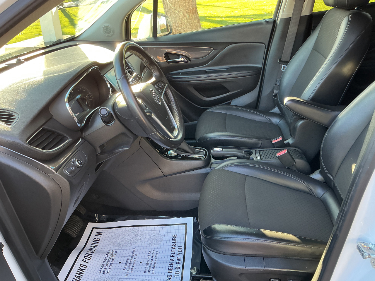 Step inside the cozy cabin where you'll find luxurious leather-wrapped steering wheel with mounted controls and a 4.2" multi-color driver information display. The fold-flat rear seats provide ample storage options while the rear cargo cover keeps your belongings secure. With dual illuminated vanity mirrors, single-zone air conditioning, and a rear-window defogger - every drive in this Buick Encore is a delight.